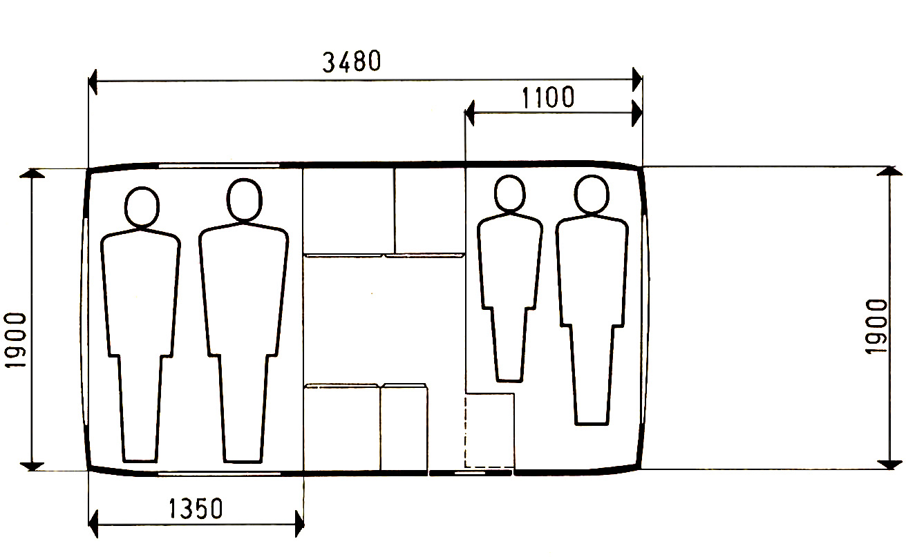 Gebaut aus zwei GFK-Schalen, innen wie außen, um eine gute Wärme- und Kälteisolierung zu erreichen